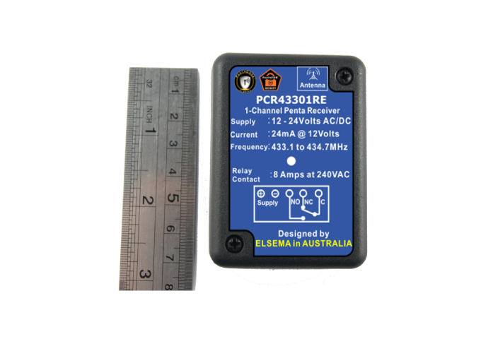 The Elsema PCR43301RE is a 1-channel Penta receiver designed for versatile control applications. It features an 8-amp relay output and supports five frequencies, ensuring reliable performance and reduced interference. With its compact design and compatibility with Elsema transmitters, it simplifies integration into automation systems, including gates, doors, and lighting controls.